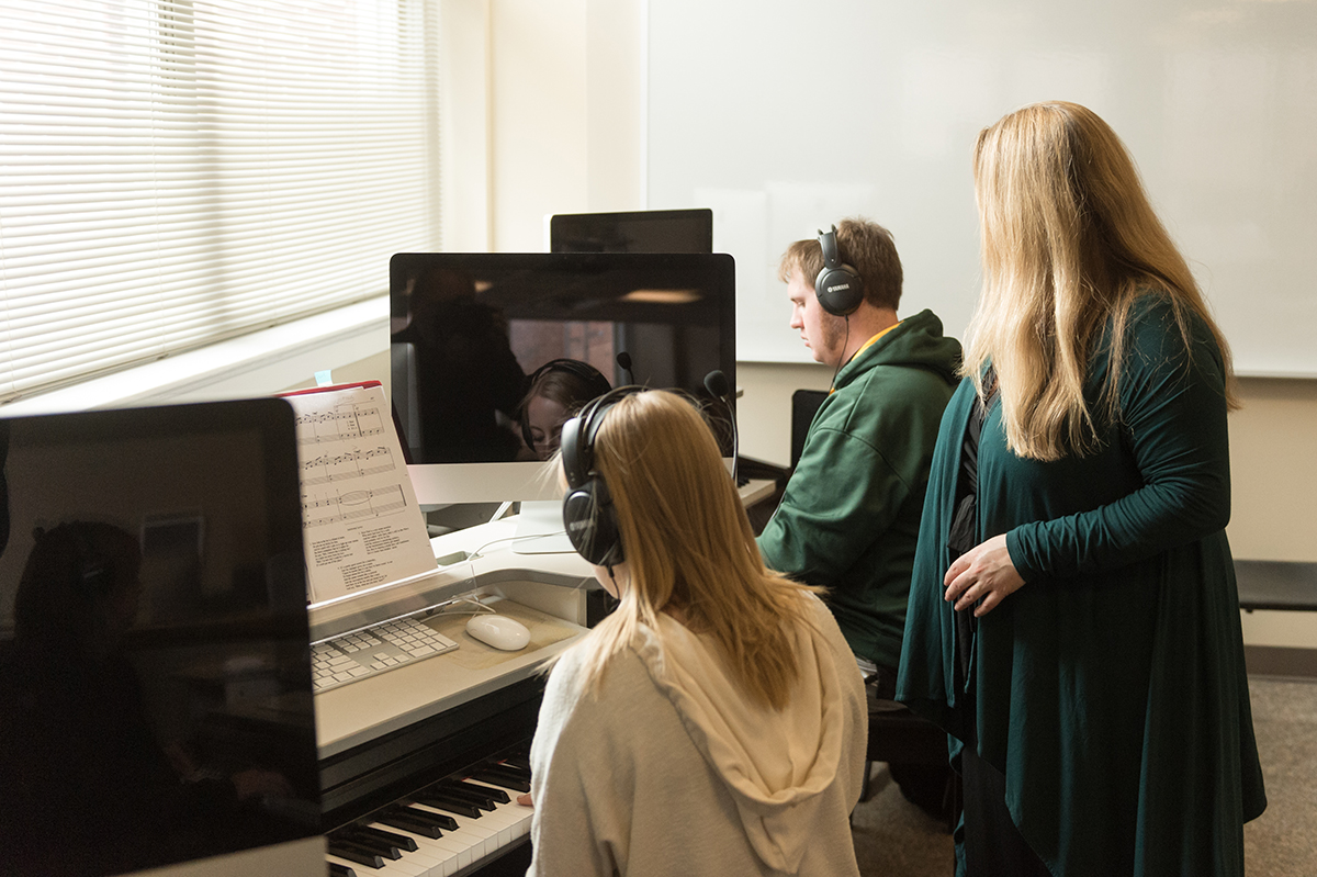 Students pictured working in the keyboard lab