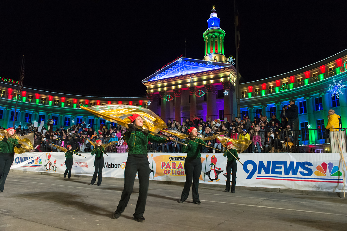 The Colorado State University Marching Band performs in the 9News Parade of Lights in downtown Denver, December 5, 2014.